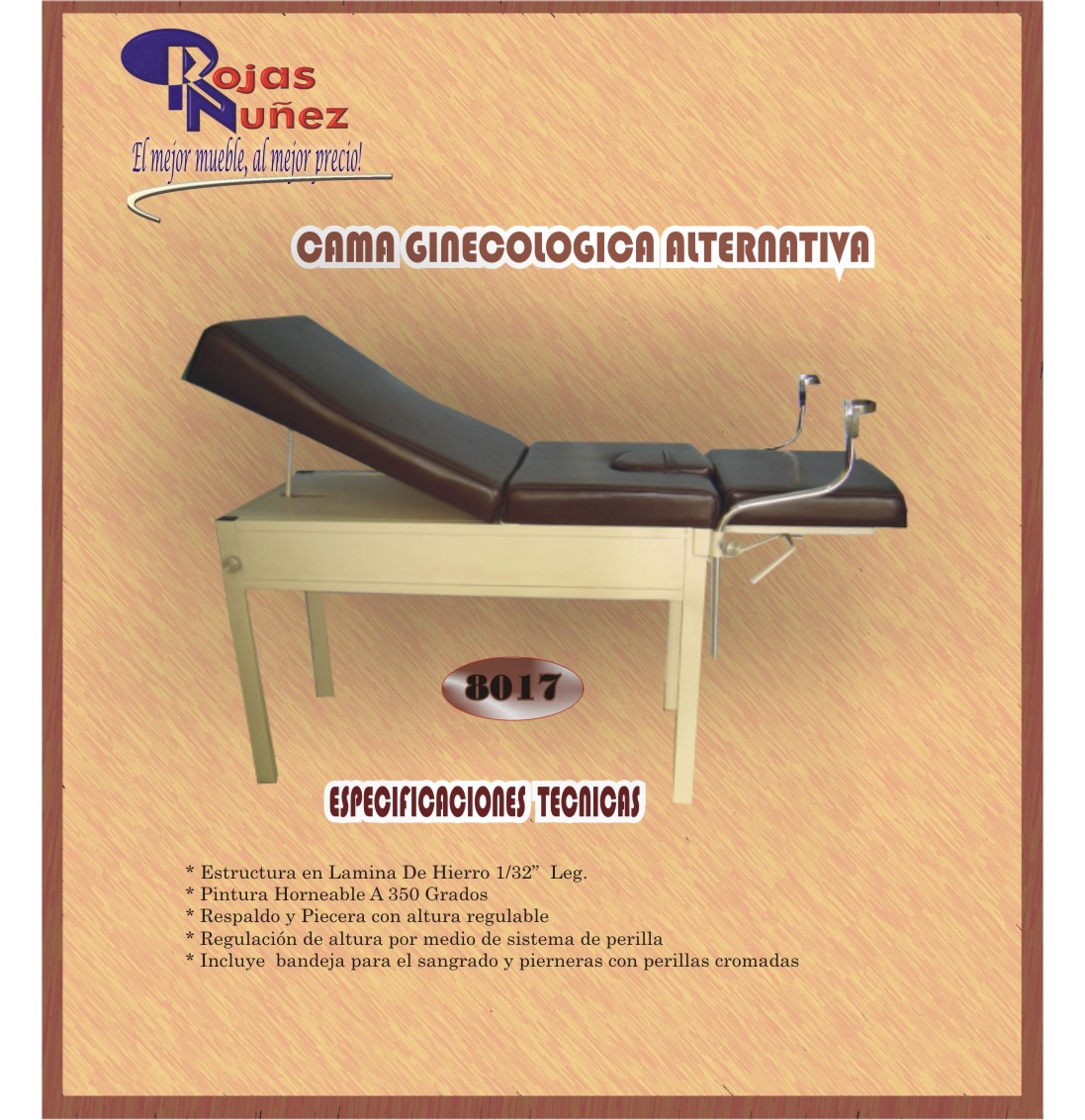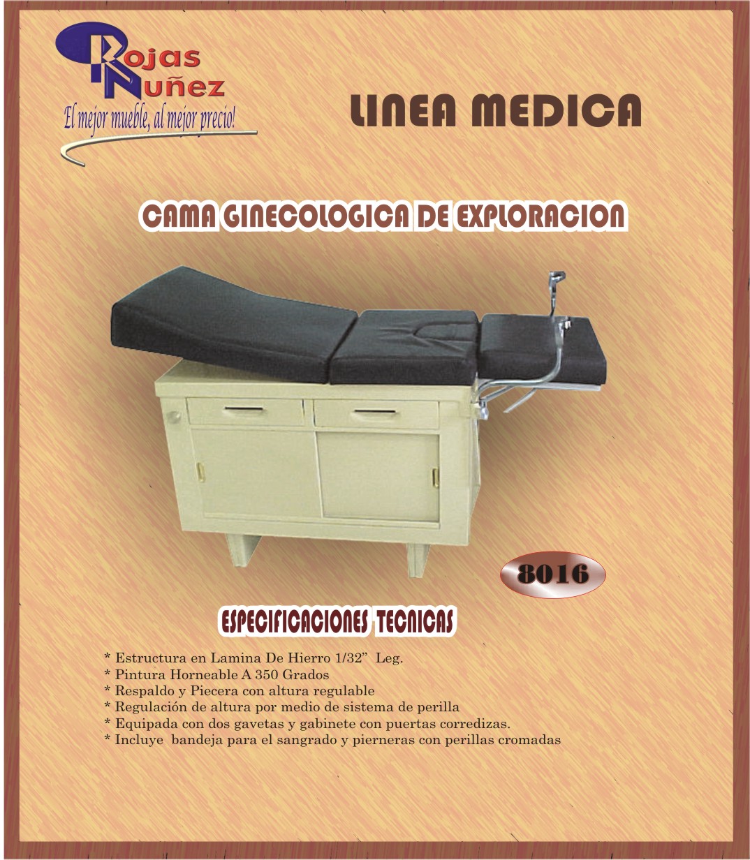 PRODUCTO: Ginecológica Equipada con bandeja para el